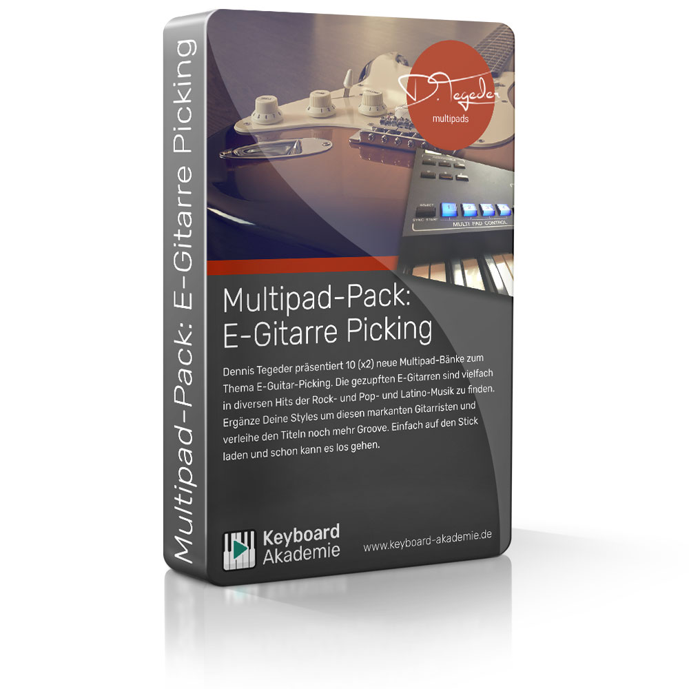 Dennis Tegeder präsentiert 10 (x2) neue Multipad-Bänke zum Thema E-Guitar-Picking. Die gezupften E-Gitarren sind vielfach in diversen Hits der Rock- und Pop- und Latino-Musik zu finden. Ergänze Deine Styles um diesen markanten Gitarristen und verleihe den Titeln noch mehr Groove. Einfach auf den Stick laden und schon kann es los gehen.