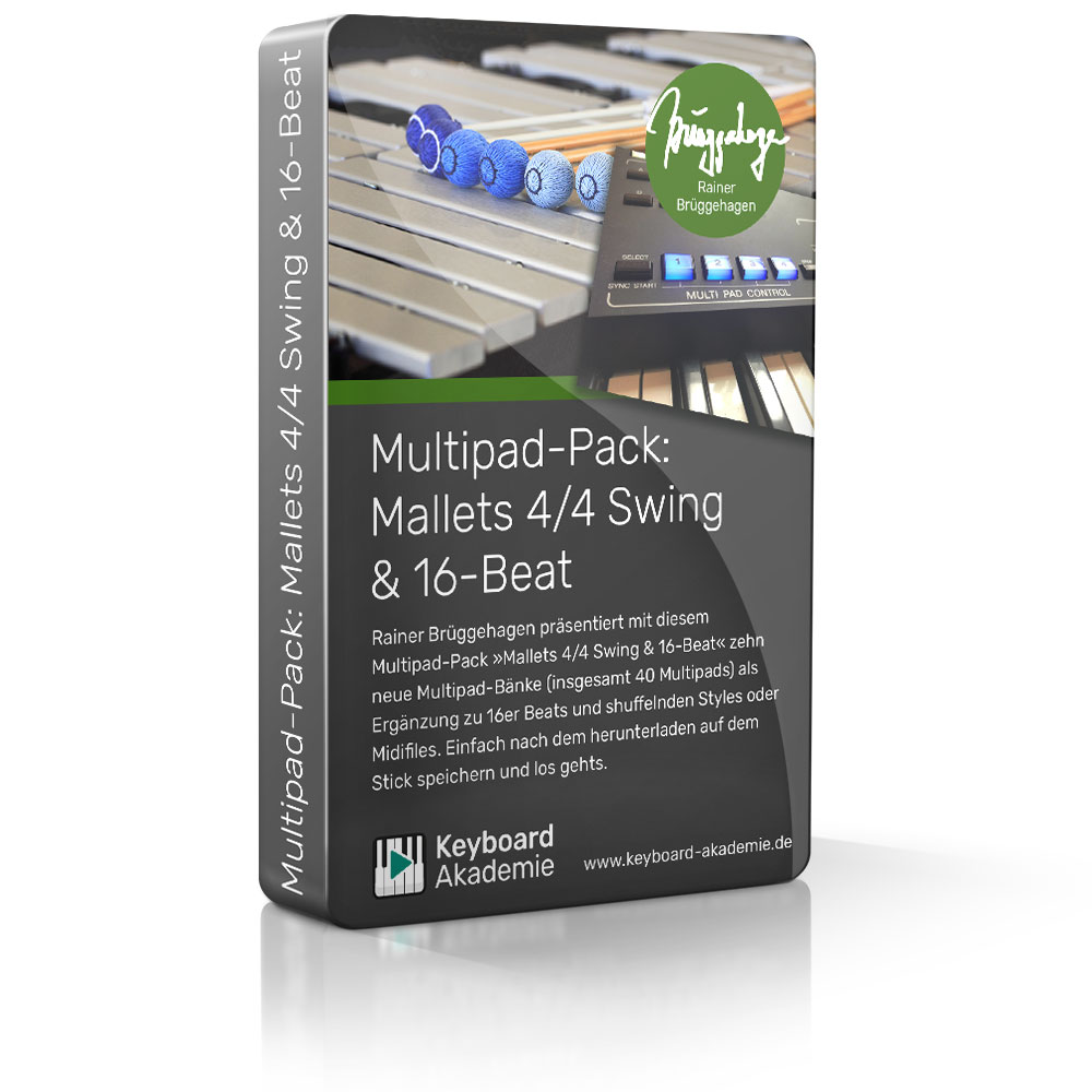 Rainer Brüggehagen präsentiert mit diesem Multipad-Pack »Mallets 4/4 Swing & 16-Beat« zehn neue Multipad-Bänke (insgesamt 40 Multipads) als Ergänzung zu 16er Beats und shuffelnden Styles oder Midifiles. Einfach nach dem herunterladen auf dem Stick speichern und los gehts.