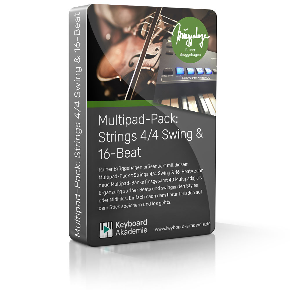 Rainer Brüggehagen präsentiert mit diesem Multipad-Pack »Strings 4/4 Swing & 16-Beat« zehn neue Multipad-Bänke (insgesamt 40 Multipads) als Ergänzung zu 16er Beats und swingenden Styles oder Midifiles. Einfach nach dem herunterladen auf dem Stick speichern und los gehts.