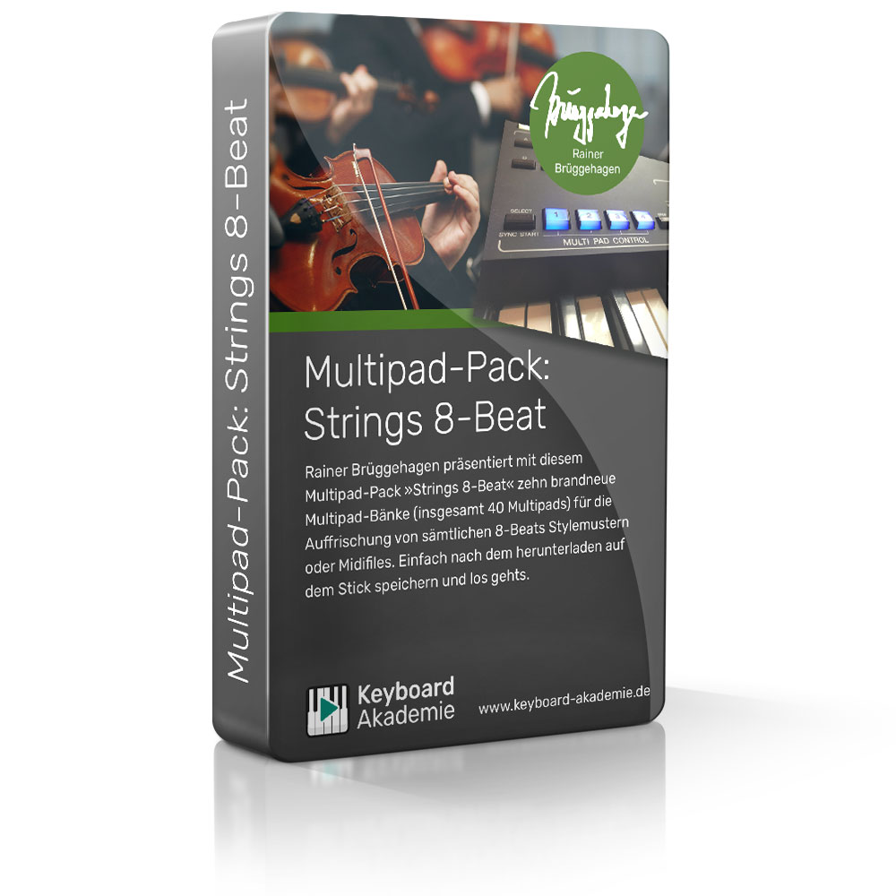 Rainer Brüggehagen präsentiert mit diesem Multipad-Pack »Strings 8-Beat« zehn brandneue Multipad-Bänke (insgesamt 40 Multipads) für die Auffrischung von sämtlichen 8-Beats Stylemustern oder Midifiles. Einfach nach dem herunterladen auf dem Stick speichern und los gehts.