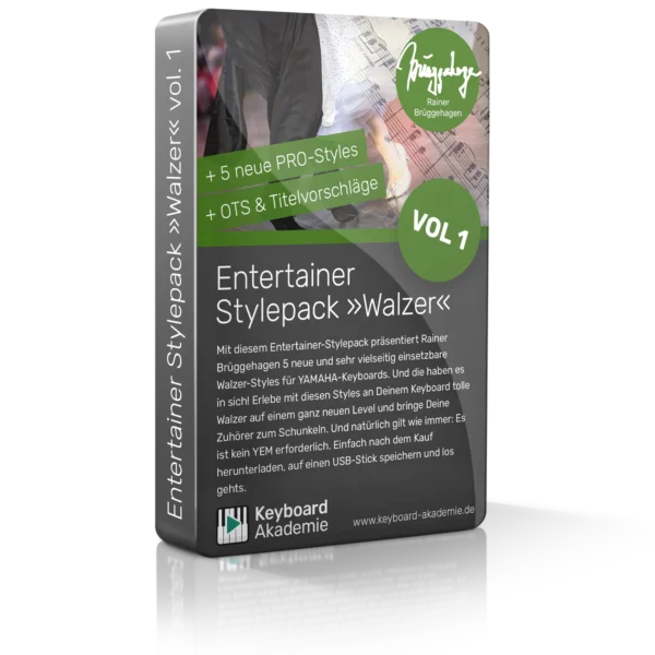 Mit diesem Entertainer-Stylepack präsentiert Rainer Brüggehagen 5 neue und sehr vielseitig einsetzbare Walzer-Styles für YAMAHA-Keyboards. Und die haben es in sich! Erlebe mit diesen Styles an Deinem Keyboard tolle Walzer auf einem ganz neuen Level und bringe Deine Zuhörer zum Schunkeln. Und natürlich gilt wie immer: Es ist kein YEM erforderlich. Einfach nach dem Kauf herunterladen, auf einen USB-Stick speichern und los gehts.